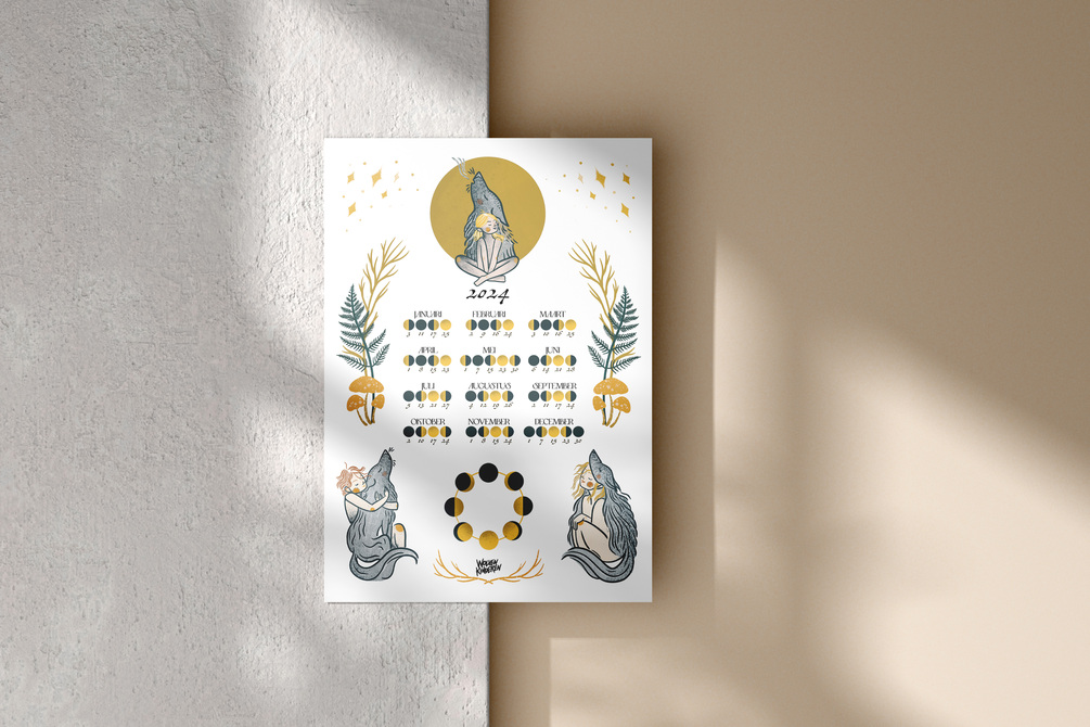 Duik in het ritme van de natuur met de Wolf Children Maankalender voor 2024. Elke maand onthult de dans van de maanfases – van nieuwe maan tot volle maan – perfect voor al je nachtelijke avonturen en het moment om je innerlijke wolf te laten huilen naar de maan.